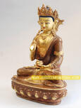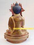 This 8” Partly Gold Gilded Crowned Amoghasiddhi Buddha Sculpture is made from Copper Alloy which is crafted by our experienced artisan who has been in this business from generations.