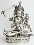 Speciality: This beautiful 5.5” Manjushri Statue made from Copper Alloy with Fully Silver Plated and using Lost Wax Technique which has beautiful detail carvings.
