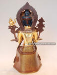 This hand carved 8.75” Partly Gold Gilded Maitreya Buddha Copper Sculpture is made by the master artisans of Patan, Nepal. |