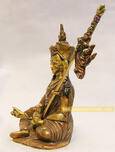 In this 4” Guru Rinpoche Sculpture, Guru Rinpoche embodies the ultimate attainment of the Vajrayana and the power, both temporal and spiritual, associated with this peerless attainment. These powerful attributes show Guru Rinpoche wearing an expression of great force and concentration while holding various implements of power such as the Vajra scepter, skull – cup and trident staff called Kathvanga. His right hand brandishes a Vajra, while the left hand, resting on his lap, supports the Vase of immortality. Guru Rinpoche is dressed not only in the robes of a monk but also in the garments of a king to indicate that Guru Rinpoche is a member of both worldly and religious royalty. |