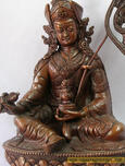 8” Guru Padmasambhava Sculpture made from Oxidized Copper Alloy. This 8” Oxidized Copper Alloy 8” Guru Padmasambhava Sculpture is hand carved with beautiful designs all over the sculpture which makes it a priceless item.