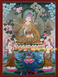 ShakyaStatues now offers wide range of Tibetan Thangka Scroll Paintings which have been selected carefully. WE offer Our Tibetan Thangka Scroll Paintings in both Plain or with Silk Brocade mounted on the Thangka Paintings. Thangka is a Tibetan scroll painting, the artwork mounted on embroidered silk brocade in rich colors and a variety of patterns. Paintings take weeks and months to complete. First, the painting surface is prepared. With the contents and design of the Thangka in his mind, the Thangka artist lays out the composition, and then the long process of painting begins. As a scroll that can be also rolled up and unrolled, the portability of the Thangka has been useful for lives on the move, such as for nomadic and displaced peoples. Tibetan Thangka Scroll Paintings are a living tradition that depicts Tibetan Buddhist culture, evoking its values, stories, and legends with most themes having a relevance to other cultures, such as orienting oneself and others with compassion, acting virtuously, and gaining in wisdom.