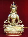 We offer a huge collection of small, medium and large Aparmita or Amitayus Sculptures or Statues made of copper, bronze, brass or silver with 24 Karat full gold plated. All of our Aparmita or Amitayus Sculptures or Statues are crafted by skillful artist form Patan, Nepal.
