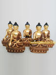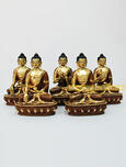 We have exclusive collection of beautiful Half Gold Plated Pancha Buddha or Dhyani Buddhas Statues or sculptures in small, medium and large size. These half gold Pancha Buddha or Dhyani Buddhas statues or sculptures are beautifully cast in Copper, Bronze, Brass or Silver using the traditional "lost wax process” by our master artisan. You'll find finely carved half gold plated Pancha Buddha or Dhyani Buddha statues or sculptures with detailed information on each statue's page. |