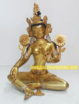 We have large and small full gold plated Green Tara Statues are cast in copper, bronze and brass and sculpted to the smallest details. Place these magnificent Green Tara Statues anywhere to add compassion and power. Each of our large and small size golden Green Tara statues is beautiful art work and entirely hand made by our master artisan in Patan Nepal. You'll find more each detail of our full gold reposed Green Tara statues detailed information on each statue's page.
