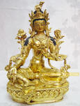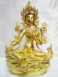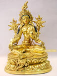 We have large and small full gold plated Green Tara Statues are cast in copper, bronze and brass and sculpted to the smallest details. Place these magnificent Green Tara Statues anywhere to add compassion and power. Each of our large and small size golden Green Tara statues is beautiful art work and entirely hand made by our master artisan in Patan Nepal. You'll find more each detail of our full gold reposed Green Tara statues detailed information on each statue's page.