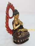 This beautiful 4.8” Partially Gold Gilded Vairochana Buddha Sculpture is made from Copper Alloy which is crafted by our experienced artisan who has been in this business from generations.