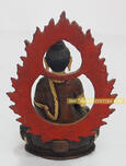 This 4.8” Amitabha Buddha Sculpture is in Samadhi Mudra with his two palms folded face up on top of the other lying on his lap. When represented on the Stupa, Amitabha Buddha always faces the west. Amitabha Buddha is worshipped thinking that one can have salvation. Sometimes holding a Patra on the same posture.