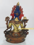 Speciality: This beautifully carved 8.5” Green Tara Statue is made from Copper Alloy 24 Karat Partially Gold Gilded and is decorated with Silver and semiprecious stones.