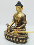 Speciality: Beautifully Carved Medicine Buddha Sculpture made from Copper with 24 Karat Partially Gold Gilded Statue.