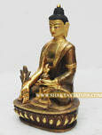 Speciality: Beautifully Carved Medicine Buddha Sculpture made from Copper with 24 Karat Partially Gold Gilded Statue.