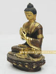 This beautiful 4.3” Partially Gold Gilded Vairochana Buddha Sculpture is made from Copper Alloy which is crafted by our experienced artisan who has been in this business from generations.
