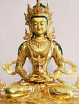 This wonderful 12” Full Gold Repousse Aparmita Buddha Sculpture is made from Copper Alloy with Full Gold Repousse Statue and has attractive color which is crafted by our experienced artisan of Patan, Nepal who has been in this business from generations.