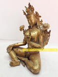 Speciality: This 9.5” Green Tara Statue is made from 24 Karat Fully Gold Gilded Copper Alloy with Antique Finish which is crafted by the master artisans of Patan, Nepal.