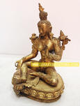 Speciality: This 9” Green Tara Statue is made from 24 Karat Fully Gold Gilded Copper Alloy with Antique Finish which is crafted by the master artisans of Patan, Nepal.