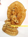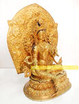 Speciality: This beautifully carved 16.5” Green Tara Statue is made from 24 Karat Fully Gold Plated Copper Alloy and has beautiful frame behind.