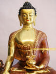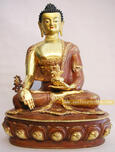 This 18” Partially Gold Gilded Medicine Buddha Sculpture is made from Copper Alloy which is crafted by our experienced artisan who has been in this business from generations.