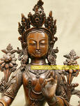 Speciality: This beautiful 13” Green Tara Statue made from Oxidized Copper Alloy and is beautifully carved using Lost Wax Technique which has beautiful unique detail carvings.