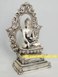 Speciality: This 9.5” Shakyamuni Buddha Sculpture is made from Copper Alloy with Fully Silver Plated which is made by the master artisans of Patan, Nepal.