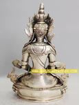 Speciality: This 7.5” Amitayus Sculpture is made from Copper Alloy with Fully Silver Plated which is made by the master artisans of Patan, Nepal.