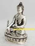 Speciality: This 6” Medicine Buddha Sculpture is made from Copper Alloy with Fully Silver Plated and has beautiful carvings made by the master artisans of Patan, Nepal.