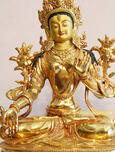 The Goddess White Tara is the female personification of compassion. Born of a tear from the eye of Avalokiteshwara, literally her name means "saviors". White Tara represents the enlightened and liberating activity of all the Buddhas. White Tara embodies the motherly aspect of universal compassion. Her compassion for living beings and her desire to save them from suffering is said to be even stronger than a mother's love for her children. White Tara, the Mother of all Buddhas, is known for her swiftness in responding to the prayers of those who invoke her name. White Tara meditation practice is said to grant health, long life, fearlessness, patience, and peace.