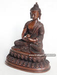 Speciality: This beautiful 4.25” Amitabha Buddha Statue made from Oxidized Copper Alloy and is beautifully carved using Lost Wax Technique which has beautiful detail carvings.