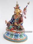 15.25” Guru Rinpoche Statue or Sculpture made from Copper Alloy and has beautiful carvings which is beautifully painted in Multicolor finish and is hand crafted by the experienced artists from Patan, Nepal.
