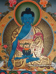 Medicine Buddha also known as Bhaishajyaguru. The Medicine Buddha is believed to be a transformation of Shakyamuni Buddha, who manifested himself as the Medicine Buddha in order to give the medicine teaching to the fourfold assembly of Hindu Gods, Sages, Bodhisattvas, Arhats and Adepts etc. On the other hand it is also said that Medicine Buddha had attained perfect enlightenment many eons previously. Medicine Buddha also Bhaishajyaguru vowed that his Buddha verse would be a world of healing, and that throughout Buddha verse, wherever beings suffer from sickness and injury, Medicine Buddha would eternally manifest to bring them his healing knowledge.