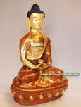 This 13.25” Partly Gold Gilded Amitabha Buddha Sculpture is made from Copper Alloy which is crafted by our experienced artisan who has been in this business from generations.
