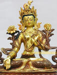 The Goddess White Tara is the female personification of compassion. Born of a tear from the eye of Avalokiteshwara, literally her name means "saviors". White Tara represents the enlightened and liberating activity of all the Buddhas. White Tara embodies the motherly aspect of universal compassion. Her compassion for living beings and her desire to save them from suffering is said to be even stronger than a mother's love for her children. White Tara, the Mother of all Buddhas, is known for her swiftness in responding to the prayers of those who invoke her name. White Tara meditation practice is said to grant health, long life, fearlessness, patience, and peace.