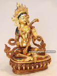 Beautifully Hand Carved Copper Alloy With 24 Karat Partially Gold Gilded Saraswati Copper Statue which is crafted by the master artisans of Patan, Nepal. |