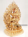 This fine quality 11.5” Megh Sambara Statue made from Copper Alloy with 24 Karat Fully Gold Gilded and has beautiful carvings which is hand carved by the experienced artists from Patan, Nepal.