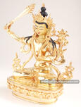 Speciality: This beautifully carved 8.75” Manjushri Statue is made from Fully Gold Gilded Copper Alloy which is crafted by the master artisans of Patan, Nepal.
