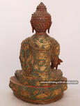 This 12.5” Fully Gold Gilded Medicine Buddha Sculpture is made from Copper Alloy with Fully Gold Gilded Statue or Sculpture and decorated with semiprecious stones done in Antique Style which is crafted by our experienced artisan of Patan, Nepal who has been in this business from generations.