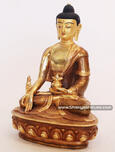 This 8” Partly Gold Gilded Medicine Buddha Sculpture is made from Copper Alloy with Partly Gold Gilded Statue or Sculpture which is crafted by our experienced artisan of Patan, Nepal who has been in this business from generations.