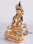 This 9” Fully Gold Gilded Aparmita Sculpture is made from Copper Alloy which is crafted by our experienced artisan of Patan, Nepal who has been in this business from generations.