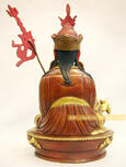 In this 8” Guru Padmasambhava Sculpture, Guru Padmasambhava embodies the ultimate attainment of the Vajrayana and the power, both temporal and spiritual, associated with this peerless attainment. These powerful attributes show Guru Padmasambhava wearing an expression of great force and concentration while holding various implements of power such as the Vajra scepter, skull – cup and trident staff called Kathvanga. His right hand brandishes a Vajra, while the left hand, resting on his lap, supports the Vase of immortality. Guru Padmasambhava is dressed not only in the robes of a monk but also in the garments of a king to indicate that Guru Padmasambhava is a member of both worldly and religious royalty. |