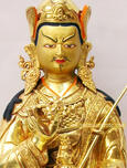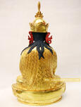 This 15” Guru Padmasambhava Statue made from Copper Alloy with 24 Karat Fully Gold Gilded and carved with beatiful carvings. This 15” Copper Alloy with 24 Karat Fully Gold Gilded Guru Padmasambhava Sculpture is hand carved and made in Patan, Nepal.