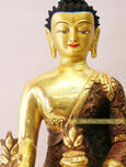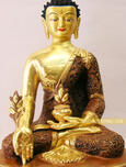 This finely carved 12” Partly Gold Gilded Medicine Buddha Sculpture is made from Copper Alloy which has beautiful carvings and is crafted by our experienced artisan who has been in this business from generations.