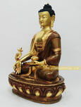 Our beautiful 13 inch seated Medicine Buddha Statue cast in copper allow with 24 K half gold plated. This Medicine Buddha Statue will make a peaceful and spiritual environment in you home.