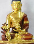 This excellent 8” Half Gold Repousse Medicine Buddha Sculpture is made from Copper Alloy and has attractive color which is crafted by our experienced artisan who has been in this business from generations.