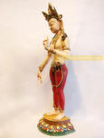 This 22” Padmapani Lokiteshvara is standing and holds stalk of lotus in his left hand. The right hand, opening outward, is lowered in a gesture of granting favors, which also indicates his readiness to help. Draped over his left shoulder is the skin of a wild deer renowned for its compassionate nature. Among the many forms of Avalokiteshvara, this two – armed, single – faced form called Padmapani which is probably the oldest. Avalokiteshvara is the embodiment of all the Buddha’s infinite compassion.