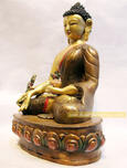 This 12” Partially Gold Gilded Bhaishajyaguru Sculpture is made from Copper Alloy using Lost Wax Method which is crafted by our experienced artisan who has been in this business from generations.