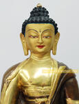Speciality: Partially Gold Gilded 12.5” Amitabha Buddha Statue Made of Copper Alloy with 24 Karat Partially Gold Gilded and has beautifully Gold painted face.