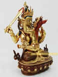 Speciality: Beautifully Hand Carved Manjushri Shakti Sculpture made from Copper Alloy With 24 Karat Partially Gold Gilded Manjushri Copper Statue.
