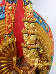 1000 Armed Avalokiteshvara Sculpture made from 24 Karat Half Gold Repousse Copper Alloy with Antique Finish. This beautiful 1000 Armed Avalokiteshvara Half Gold Repousse Copper Alloy with Antique Finish Sculpture stands on Lotus.