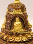Partially Gold Gilded 6” Stupa or Chorten made from copper is beautifully carved with Buddha sculpture in the middle. |
