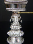 Silver made and beautiful design of Kalash at the center of the Butter Lamp with four leaves rolled down which makes this Silver Butter Lamp a wonderful Ritual Item. |