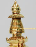 Stupa (Chorten in Tibetan which means "the basis of offering") is an important religious monument in Tibet. This unique religious architectural form expresses significant religious symbolism and presents Buddha's physical presence. It generally consists of three parts; a whitewashed base, a whitewashed cylinder and a crowning steeple or shaft. The square base foundation, representing the Buddha's lotus throne, symbolizes earth, the state of solidity and five forces (faith, concentration, mindfulness, perseverance and wisdom.) The four stepped base may or may not have openings. Above the base is a square or hexagon four stepped pedestal which represents The Buddha's crossed legs. Seated on the base is the cylinder, representing his torso. This symbolizes water, the state of fluidity and seven essential conditions of enlightenment: concentration, effort, equanimity, flexibility, mindfulness, joy and wisdom. Sometimes a Stupa has a shield like grillwork in one face. This allows relics of high lamas, statues and other items to be put inside. Between the cylinder and the crowning steeple, three is a square box, called Harmika, which represents the Buddha's eyes. It is considered to be the residence of the gods, symbolizing the eightfold noble path. The crowning steeple, the Buddha's crown, is usually hand - made of brass and/or covered with gold leaf. It is segmented into 13 tapering rings, a parasol and a twin symbol of the Sun and the Moon. Those rings, representing fire and the thirteen steps of enlightenment, successively symbolize ten powers of the Buddha and three close contemplations. The stylized parasol, representing wind, wards off all evil. At the top of the steeple is the twin symbol of the Sun and the Moon, which represent wisdom and method respectively. A flaming jewel may be found on the top of the twin symbol, symbolizing the highest enlightenment.